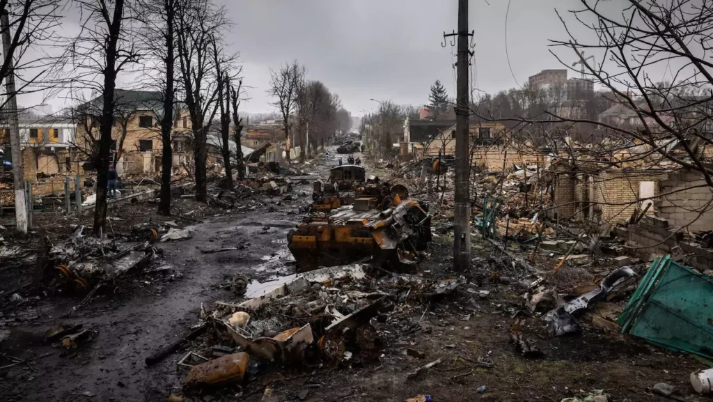 Secondo il sindaco del paese e altre autorità locali, nella città sono stati recuperati circa 1.000 corpi, di cui 31 bambini. Le prove fotografiche mostravano cadaveri di civili, allineati con le mani legate dietro la schiena, fucilati a bruciapelo, il che apparentemente dava la prova che erano avvenute esecuzioni sommarie. Un’inchiesta di Radio Free Europe ha confermato l’uso di un seminterrato sotto un campeggio come camera di tortura, un modello aggiornato dei “punti di filtraggio” ceceni. Molti corpi sono stati trovati mutilati e bruciati, ragazze di appena quattordici anni hanno riferito di essere state violentate da soldati russi. L’ Ucraina ha chiesto alla Corte penale internazionale di indagare su quanto accaduto nell’ambito delle indagini in corso sull’invasione al fine di determinare se siano stati commessi una serie di crimini di guerra russi o crimini contro l’umanità .